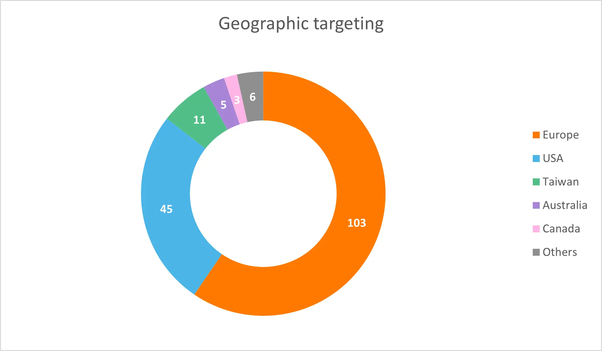 Many of the HTML phishing attachment file names which were uploaded to VirusTotal contained domain names associated with legitimate companies. Assuming that these were the companies to which the phishing emails were sent, we calculated a geographic distribution of the targets. With 173 companies as base, this is a rough estimation of what regions the phishing campaign may have focused on. Figure 10 shows this distribution where 60% were targets in Europe, followed by the USA with 26%. Within Europe the most targeted country was Germany with 36 companies.