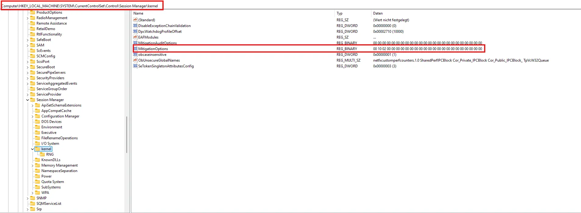 HKEY_LOCAL_MACHINE\SYSTEM\CurrentControlSet\Control\Session Manager\kernel