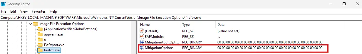The MitigationOptions value explicitly overrides the global MicrosoftSignedOnly mitigation, allowing Firefox to load unsigned DLLs despite the system-wide restriction. We have designed our own detection approaches to reveal unusual or atypical changes in this technology's environment at an early stage. This often enables anomalies to be identified before they result in the protective mechanisms failing.